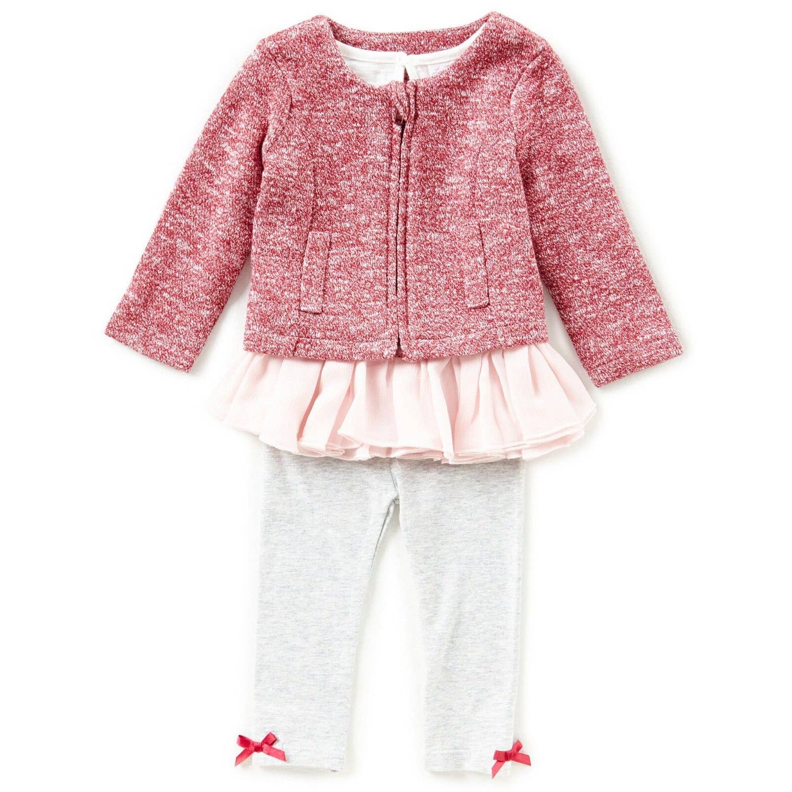STARTING OUT Girls Infant 3 PC Set, Jacket, Ruffled Tee, Leggings