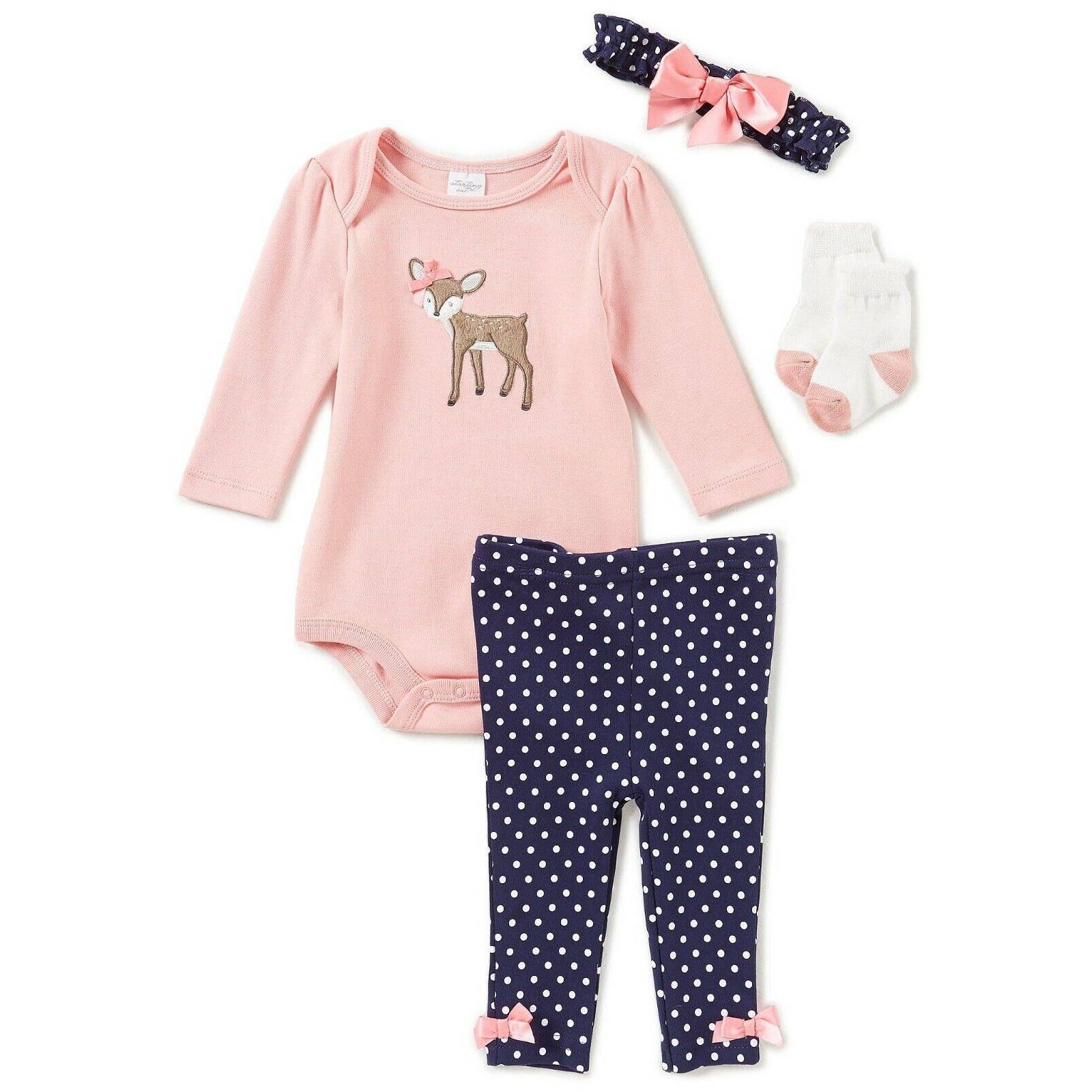 STARTING OUT Newborn Pink Polka Dot Pants, Deer, Headband & Bodysuit