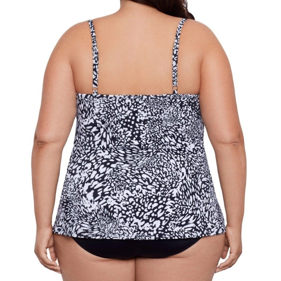 Swim Solutions Plus Size Printed Flyaway Fauxkini One Piece Leopard Swirl