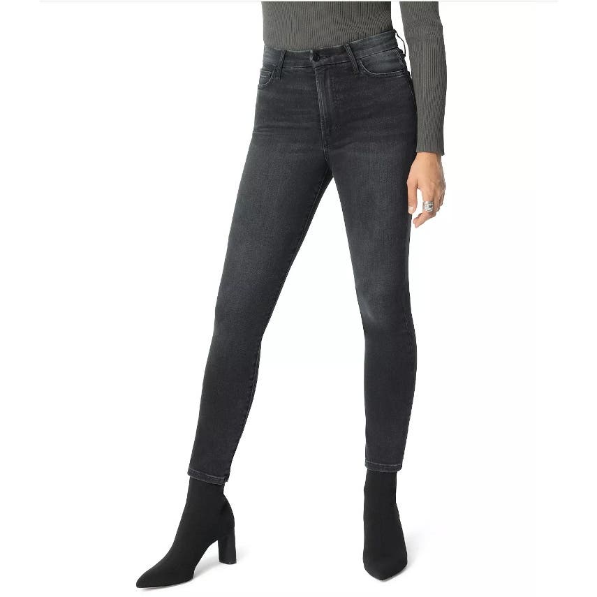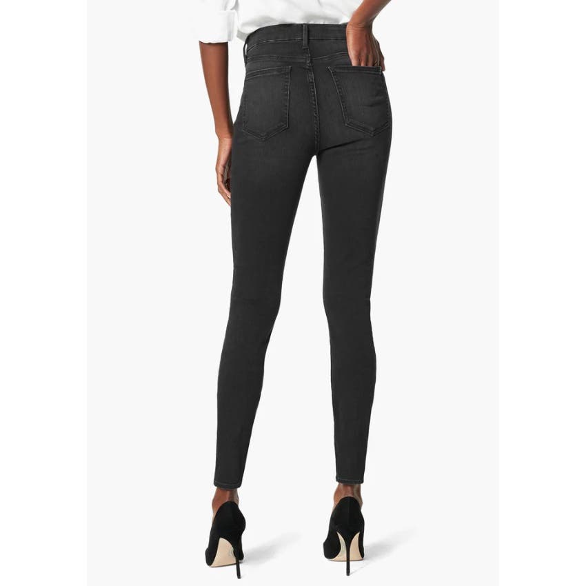 Our Charlie Ankle in Hayward is a black high-rise skinny jean that's been washed down and worn in with faded details.