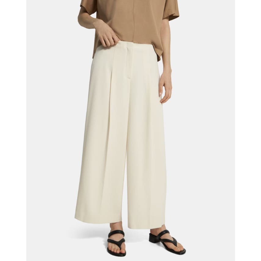 Theory Ladies Pleated Wide-Leg Pant in Striped Admiral Crepe