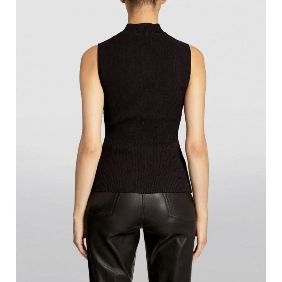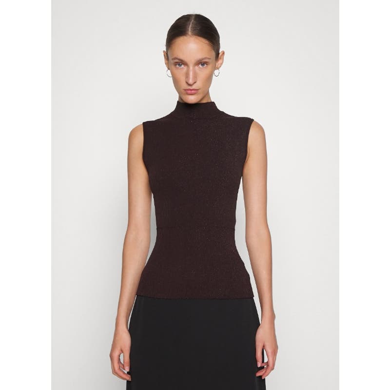 THEORY PLAITED SLEEVELESS TANK COMPACT MOCK NECK TOP MERLOT