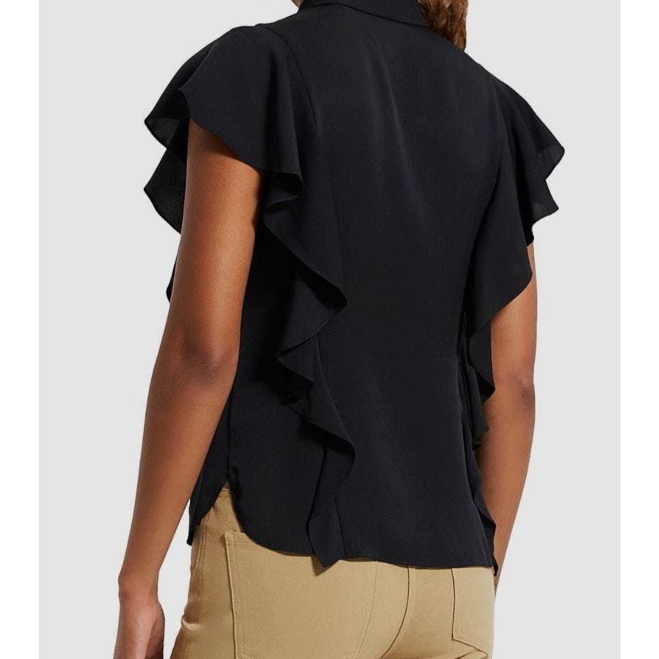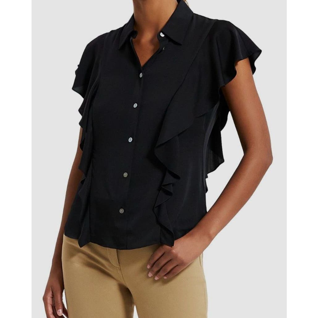 Theory Women Black Ruffle Cap Sleeve Silk Georgette Blouse Top