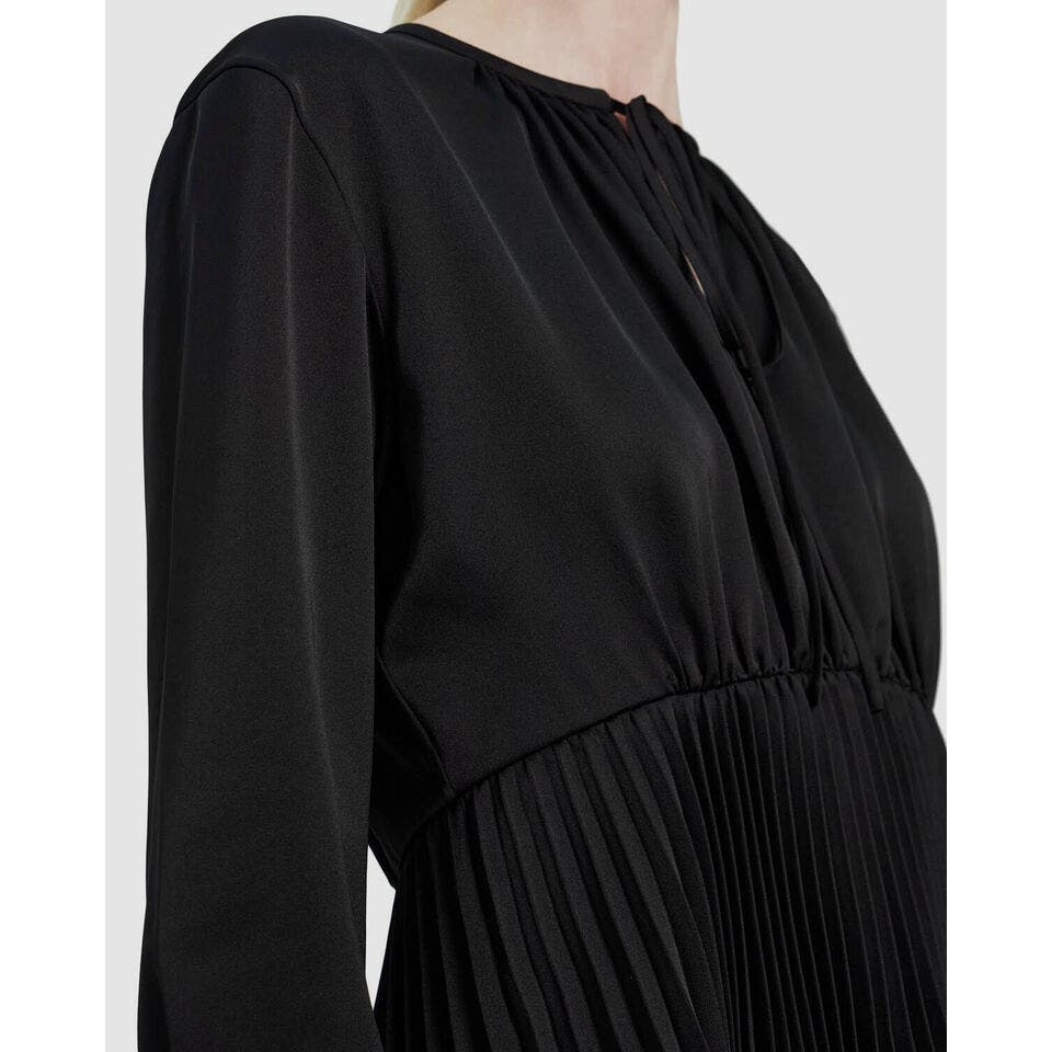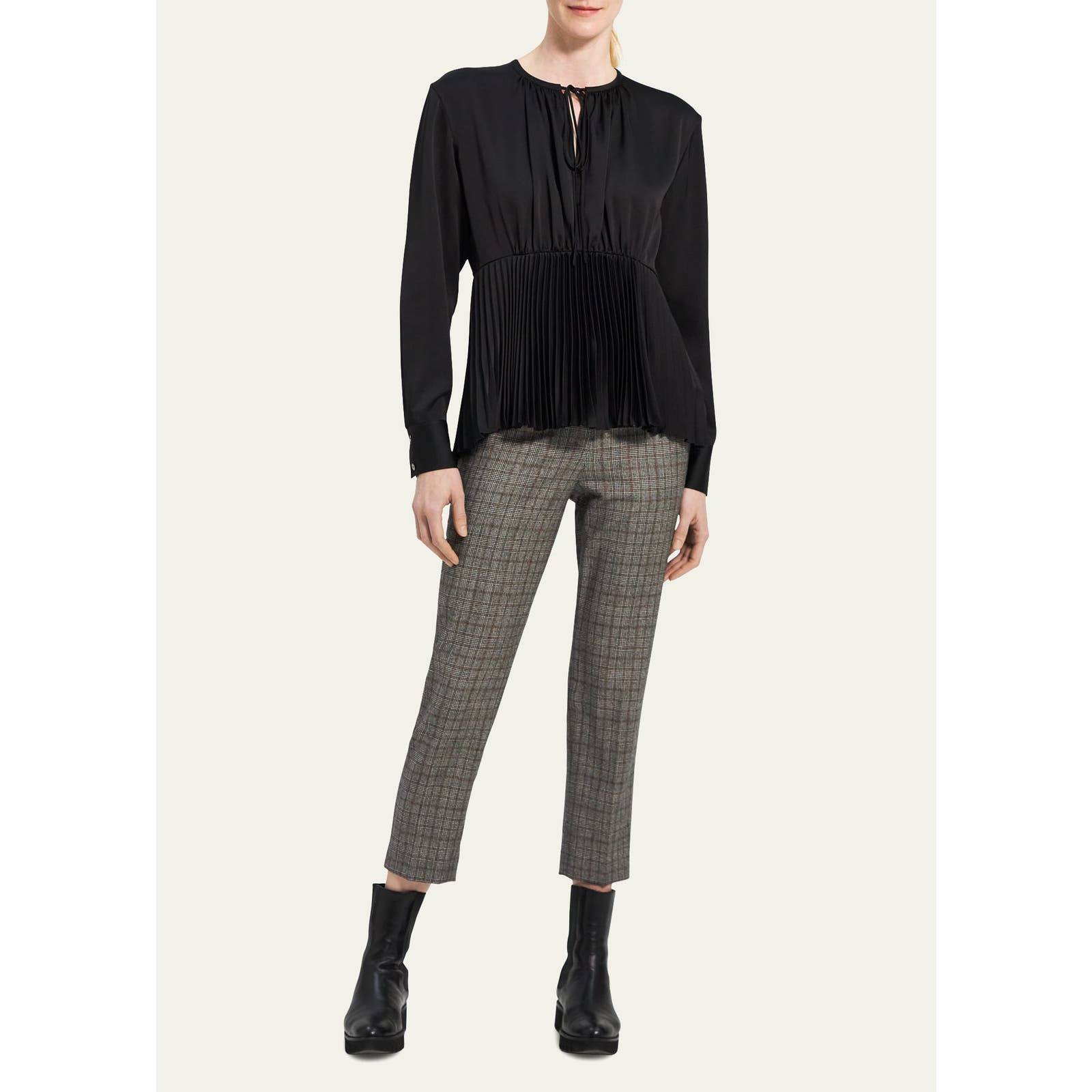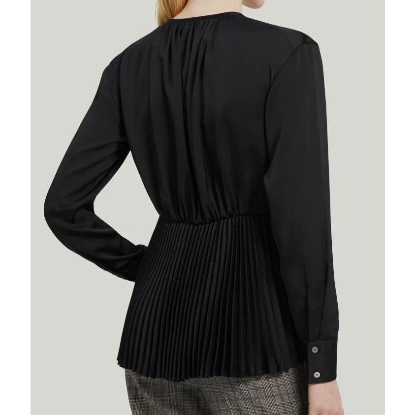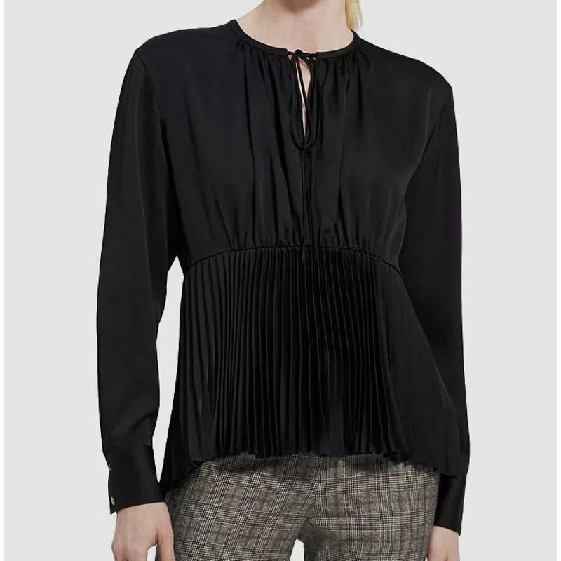 Theory Women's Black Satin Self-Tie Pleated Peplum Hem Blouse