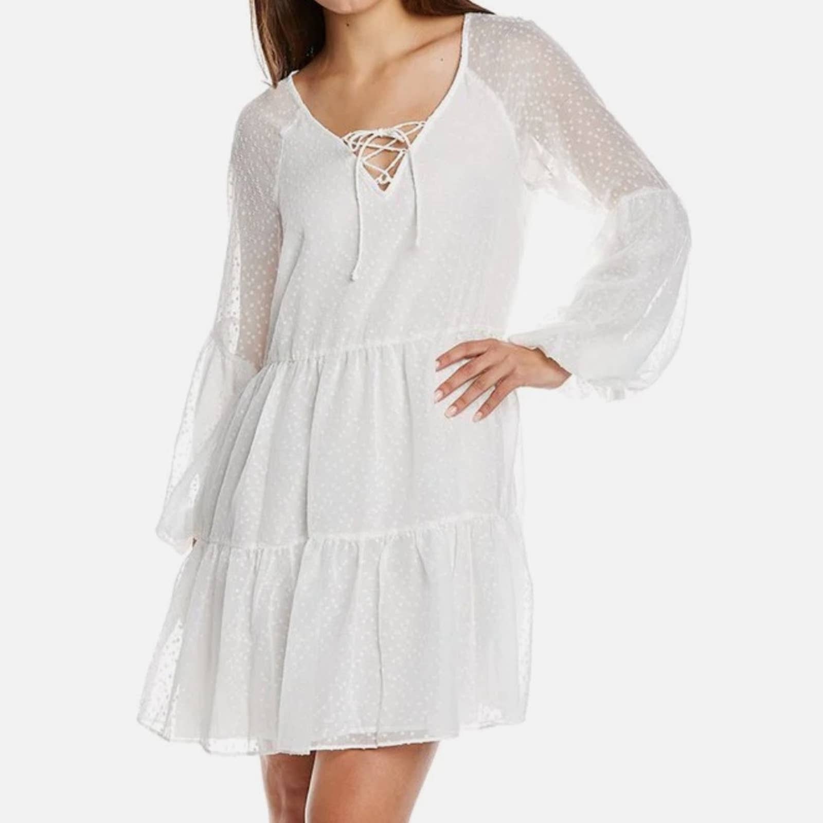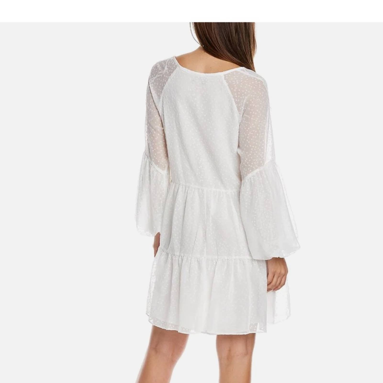 Vince Camuto White Tiered Smock Dress w/ Puff Sleeves & Lace Front Details